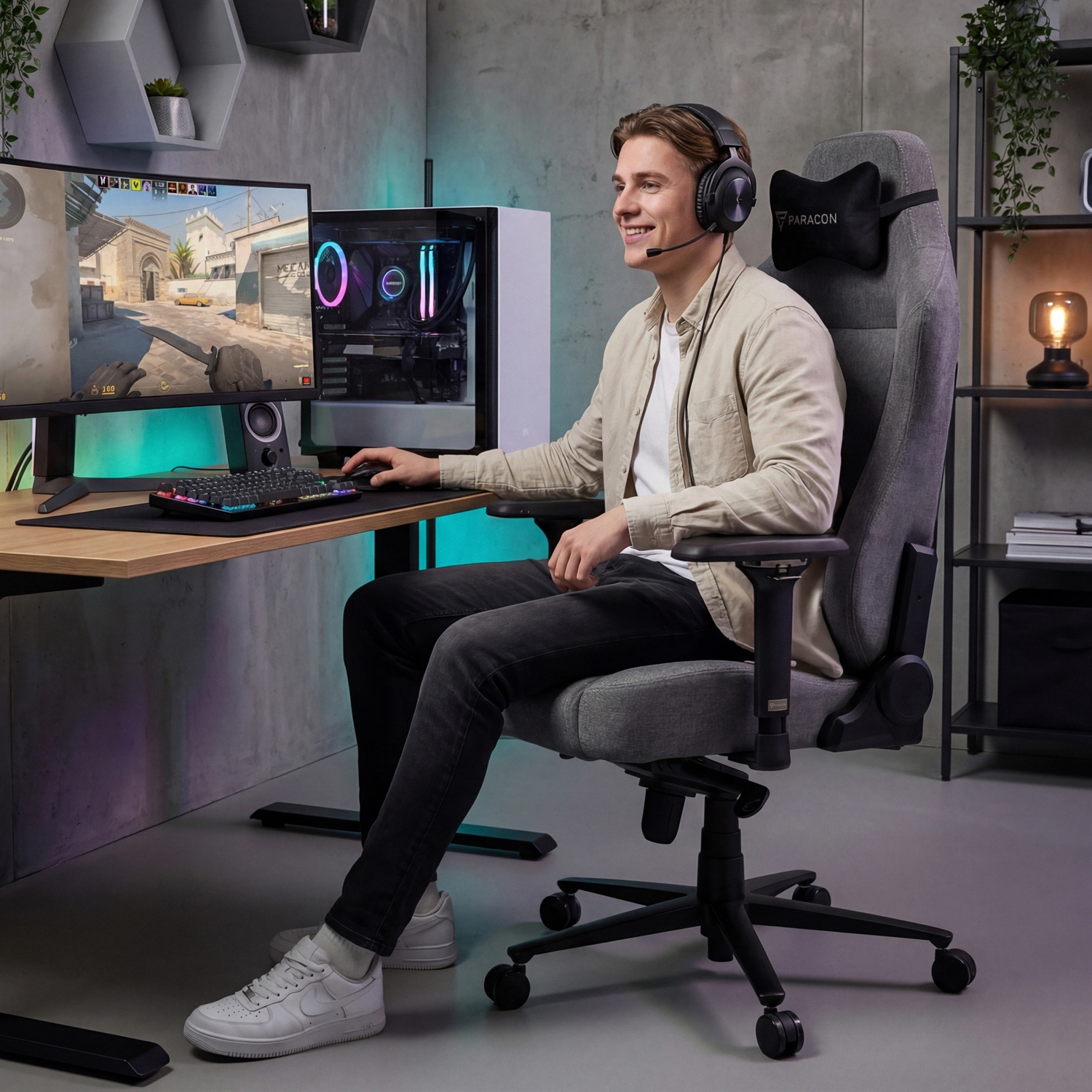 Chaise Gaming Paracon SUPREME - Textile - Gris